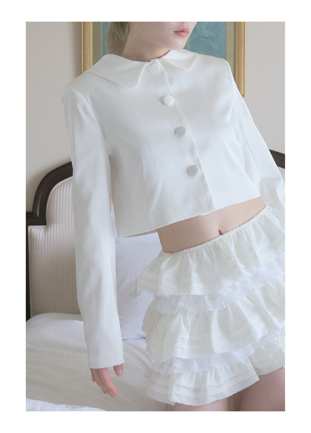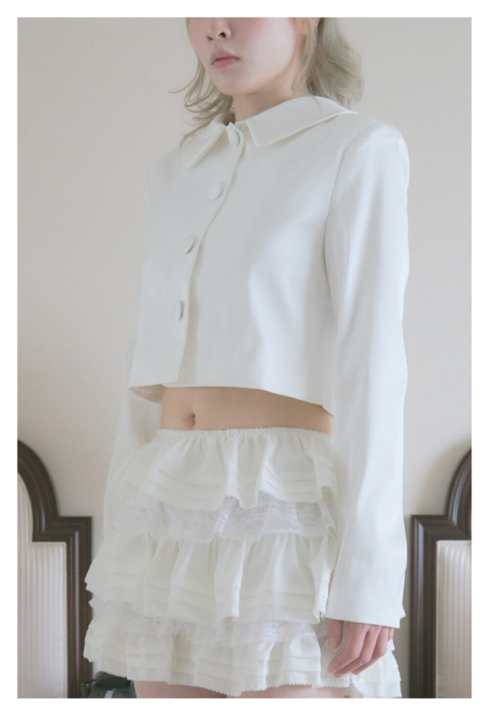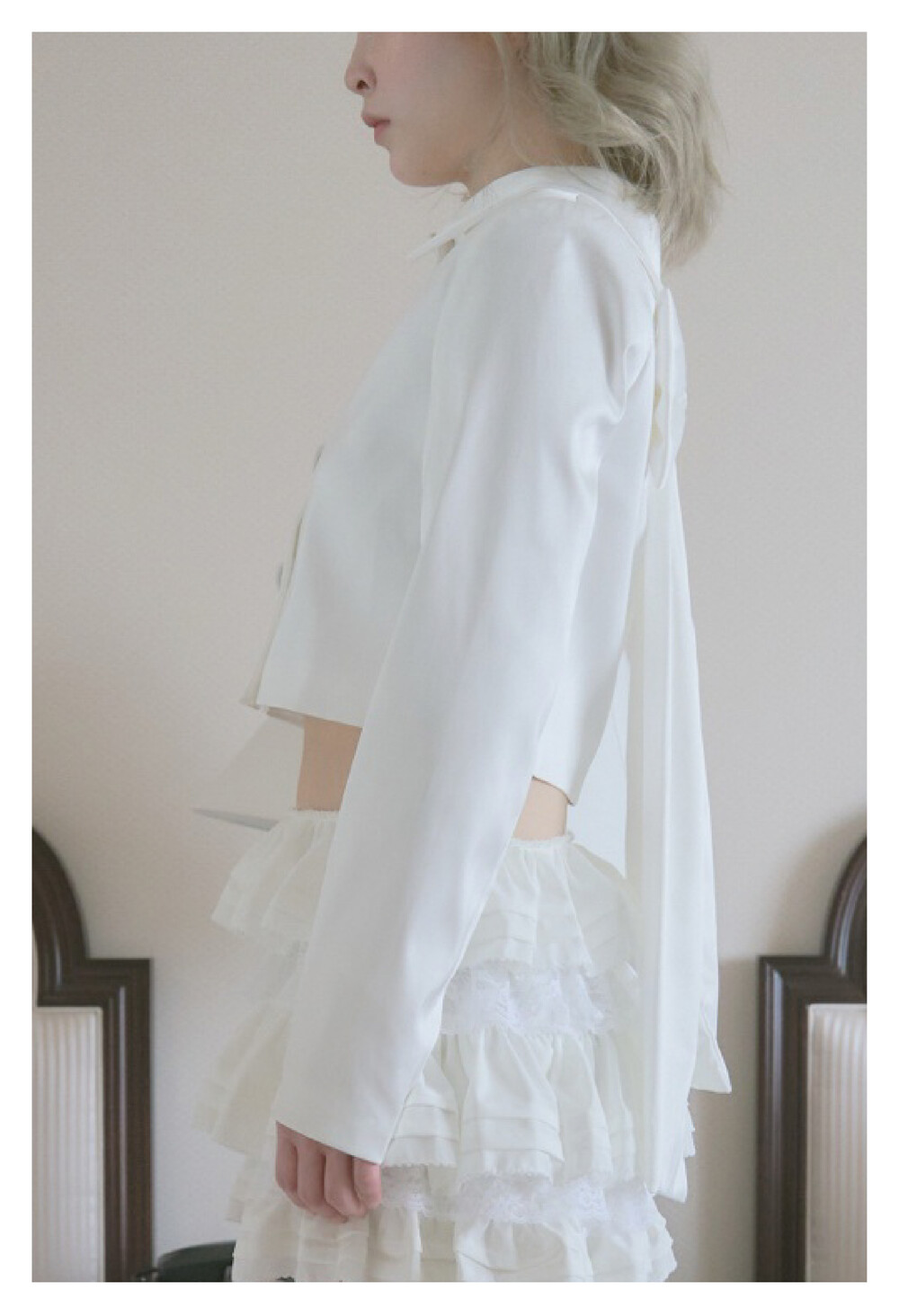 ・심플한 디자인의 크롭자켓 뒷 리본디테일